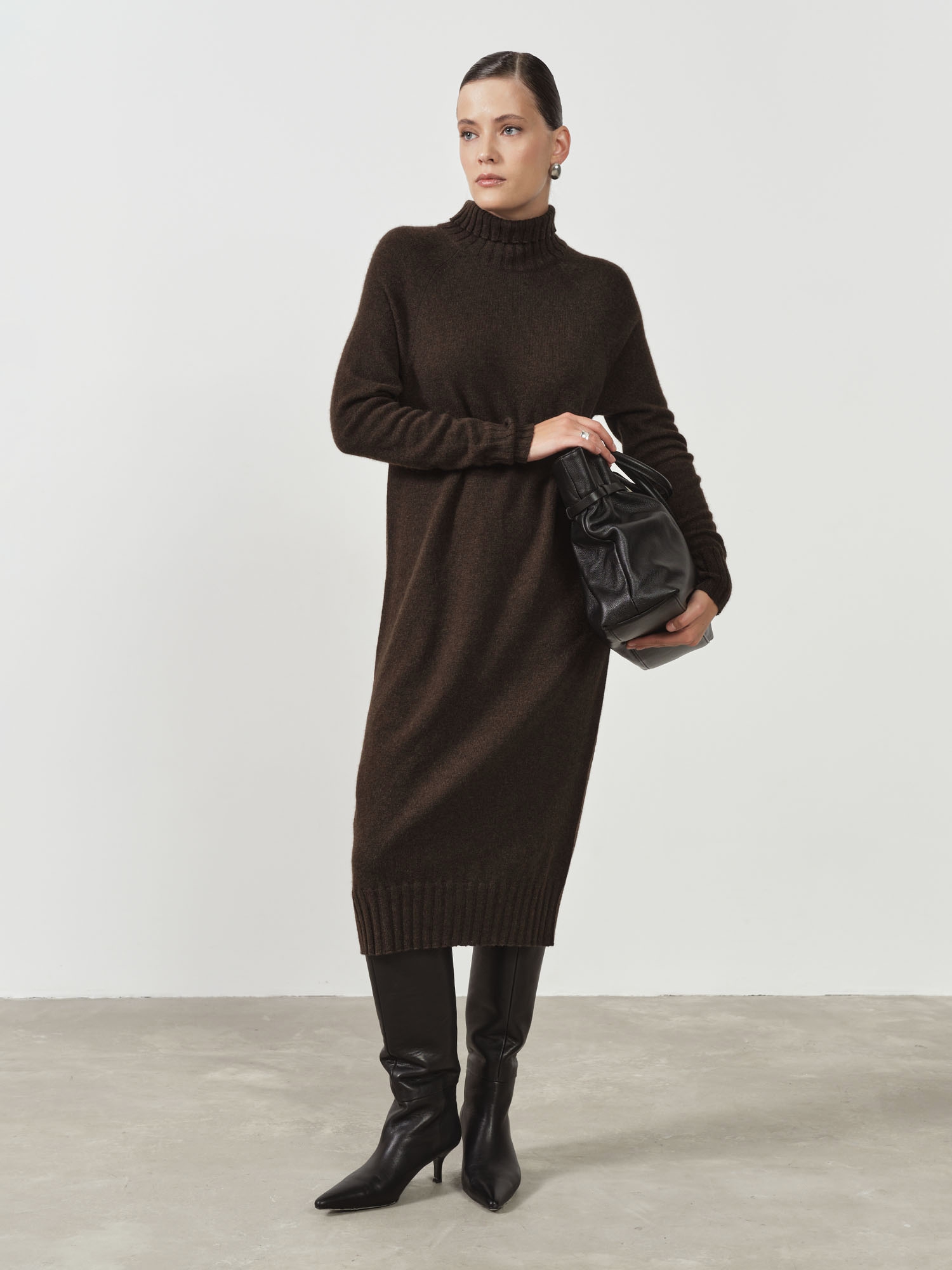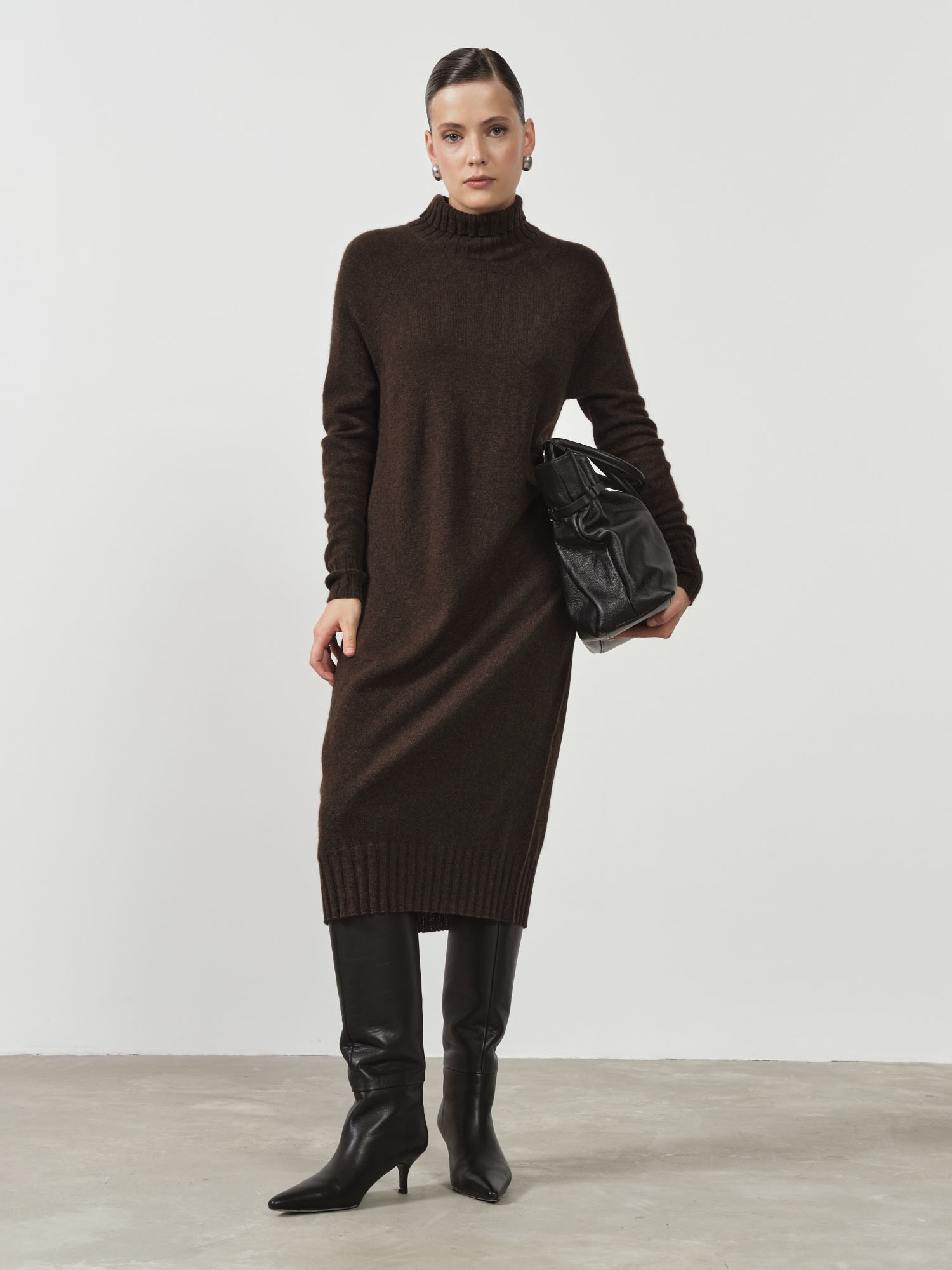 Платье из пуха яка — утончённая и тёплая модель, сочетающая элегантность и максимальный комфорт. Удлинённый силуэт и мягкая фактура делают его идеальным выбором для холодного сезона.